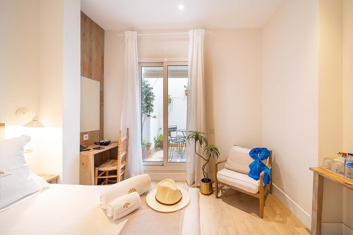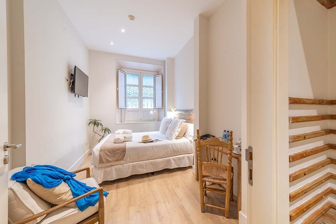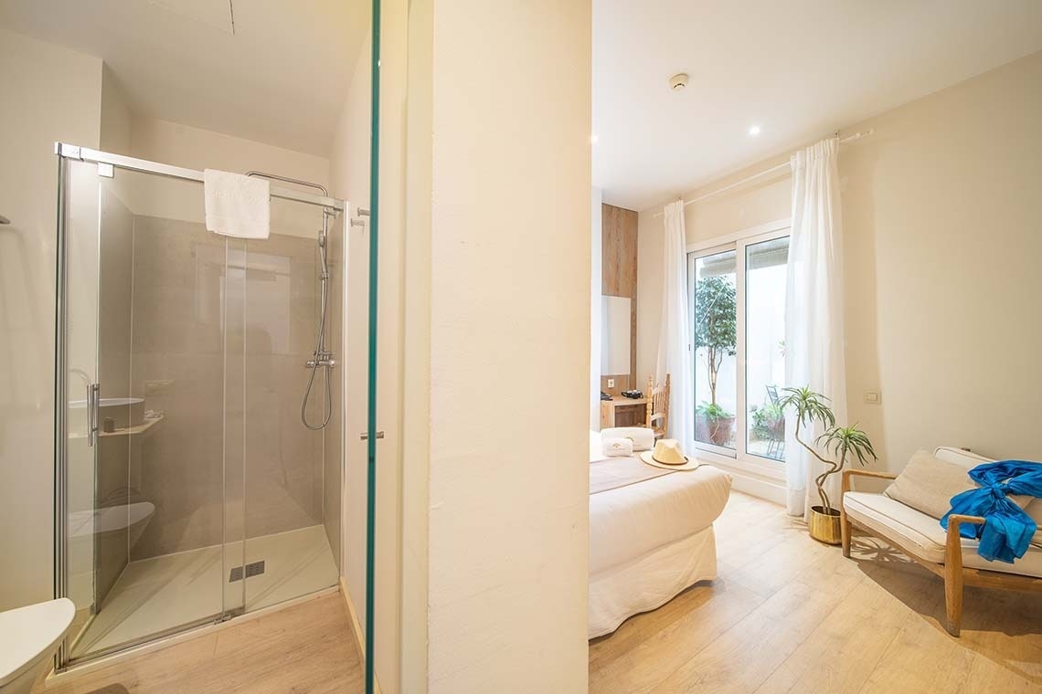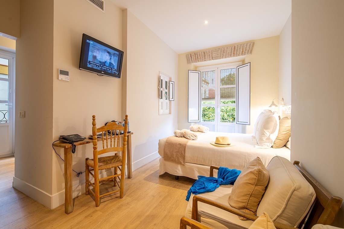 Amplia habitación ubicada en la planta baja con una ventana y vistas a la plaza Doña Elvira, donde podrá disfrutar del sonido de su fuente, el aroma de los naranjos y los alegres colores de los azulejos que la rodean. Manteniendo el mismo tema de decoración que en el resto de las habitaciones, los colores suaves, los muebles de madera y los detalles tradicionales combinan este encantador alojamiento. También cuenta con una columna de ducha de hidromasaje, ideal para disfrutar después de explorar la ciudad y sus monumentos.